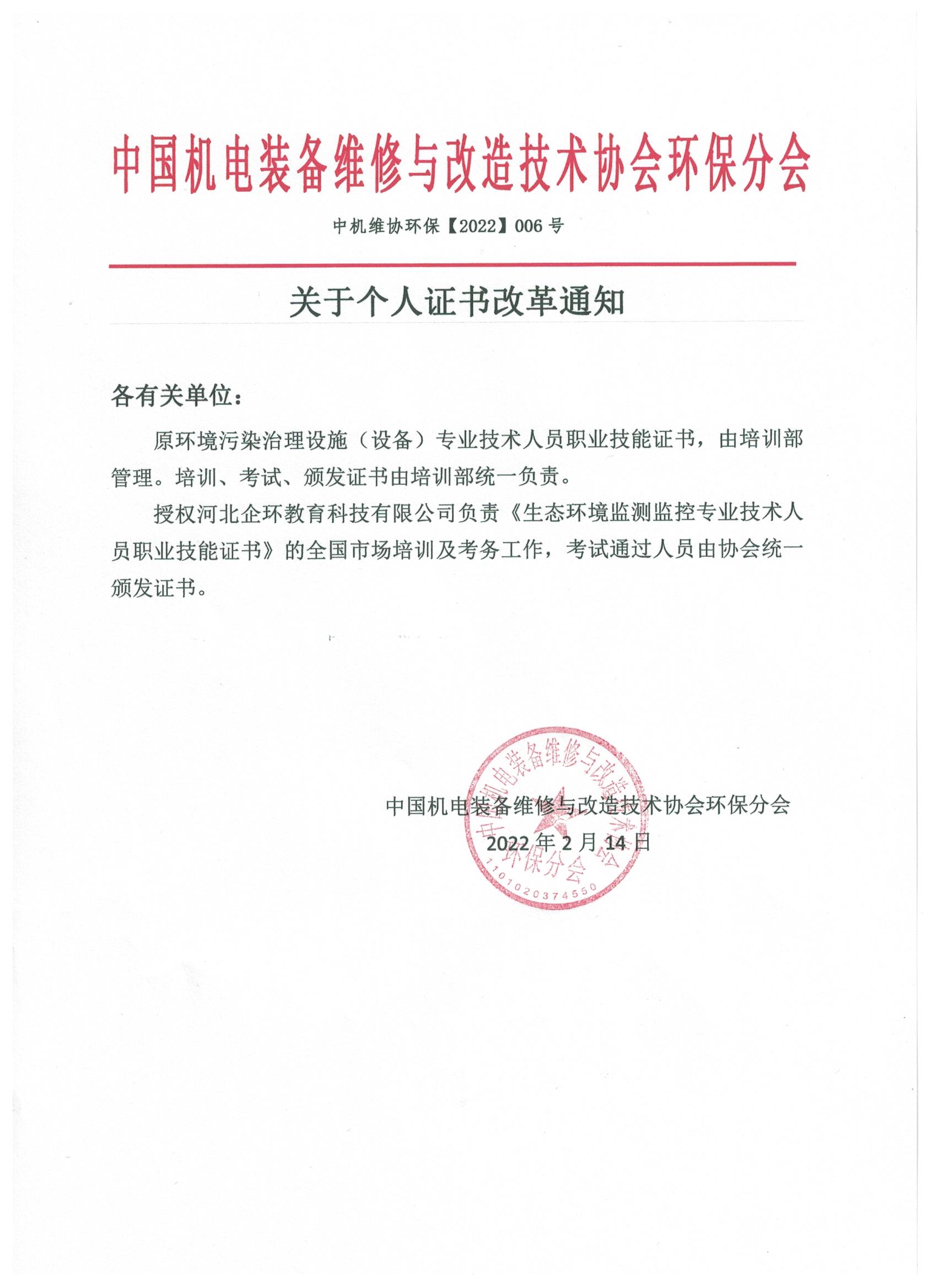 關(guān)于個人證書改革通知!